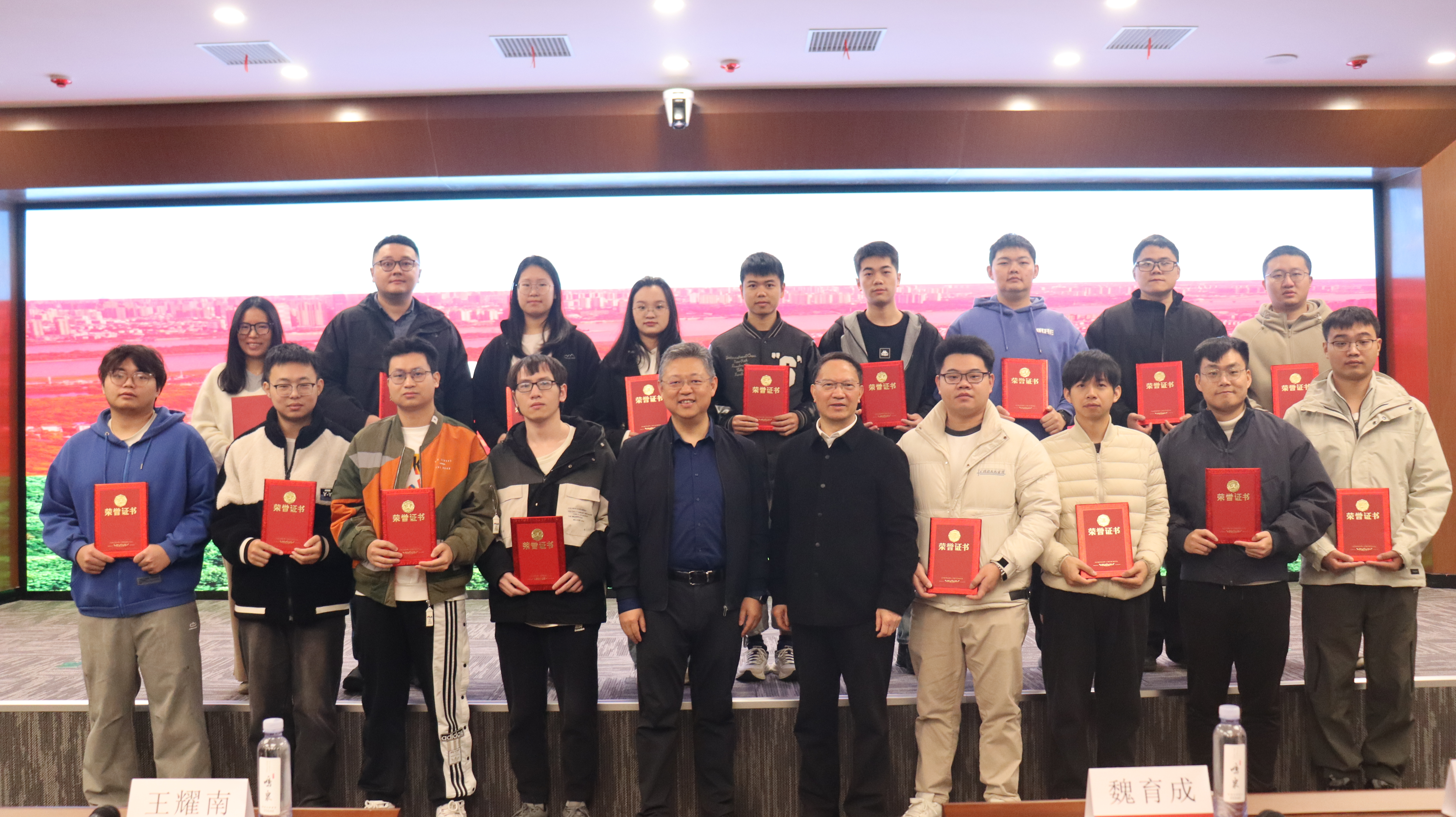 在随后的颁奖环节,中科亿海微公司总裁魏育成和王耀南院士为苏子豪、张艺佳、曾丹平等18位获奖同学颁发了荣誉证书。这份荣誉是对他们过往刻苦钻研、勇于创新的最佳褒奖。