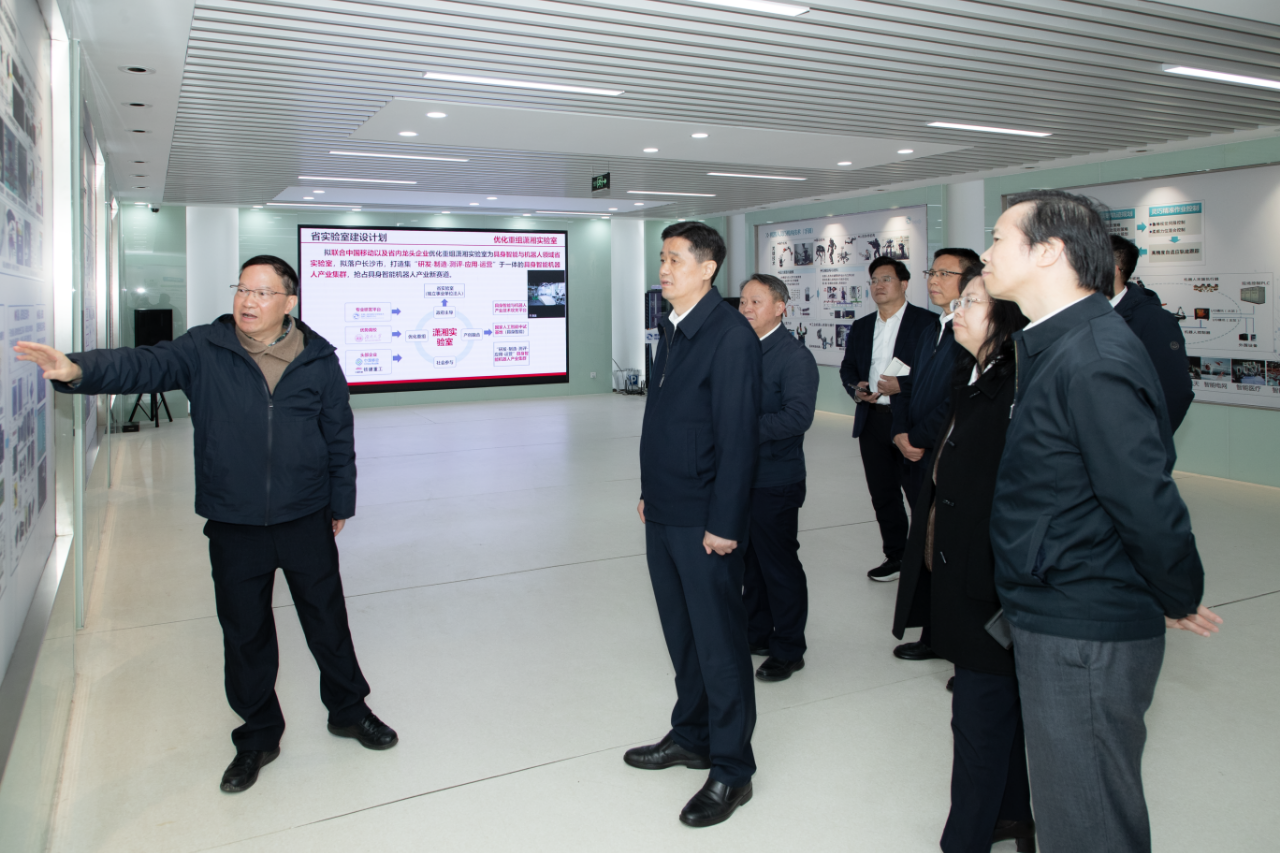 3月11日下午,省工信厅党组书记、厅长王卫安,市委副书记、市长陈博彰深入潇湘实验室,开展具身智能科技创新联合调研。调研组与中国工程院院士王耀南、湖南大学校长段献忠及青年科研人员深入交流,详细了解前沿技术攻关、科研成果转化、应用场景落地等情况。